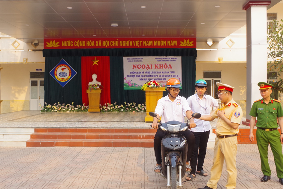 Công an xã Hoằng Hóa phối hợp tổ chức tuyên truyền luật an toàn giao thông, trải nghiệm "Lái xe an toàn"