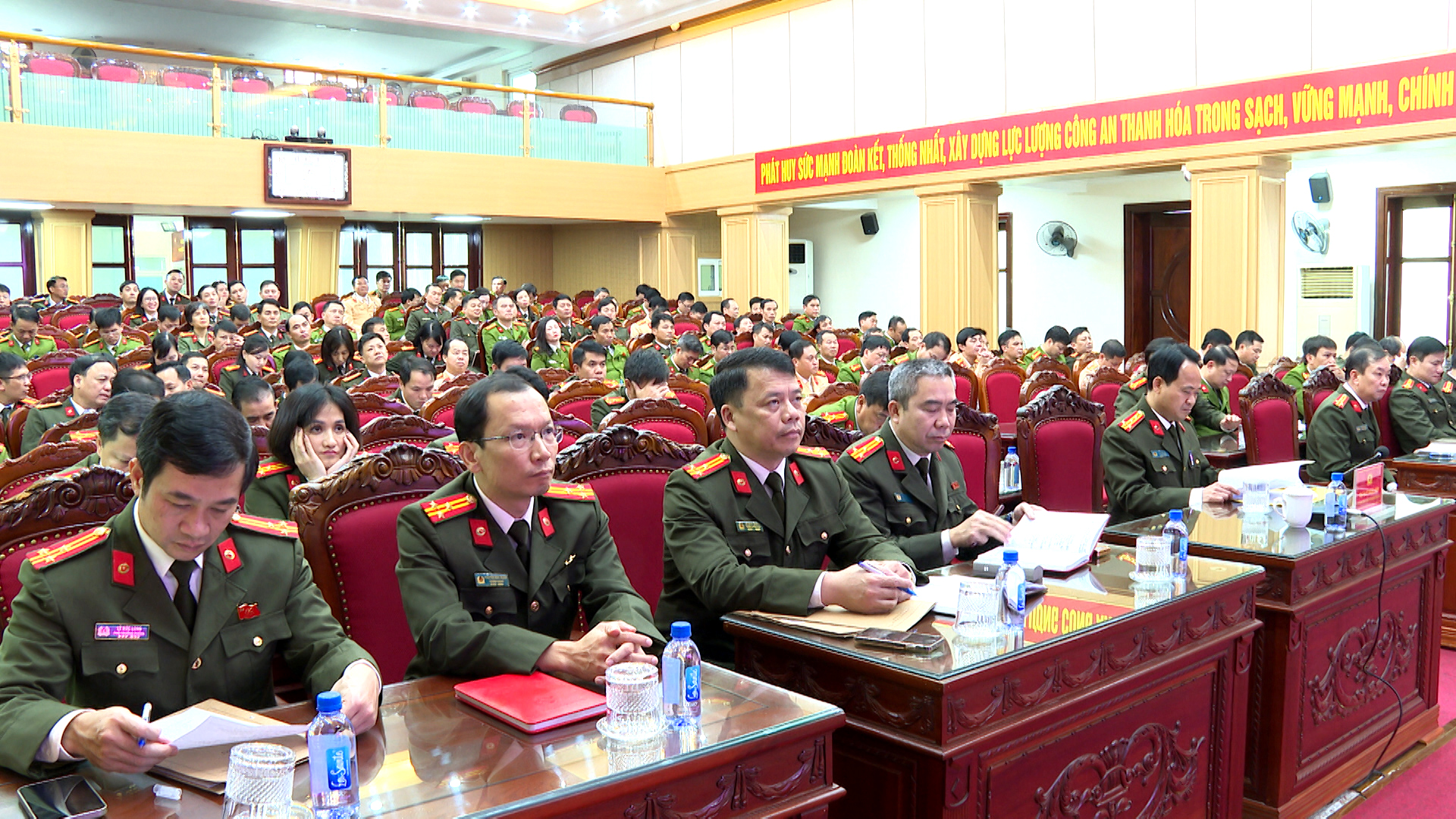 Các đại biểu dự tại điểm cầu Công an tỉnh Thanh Hóa