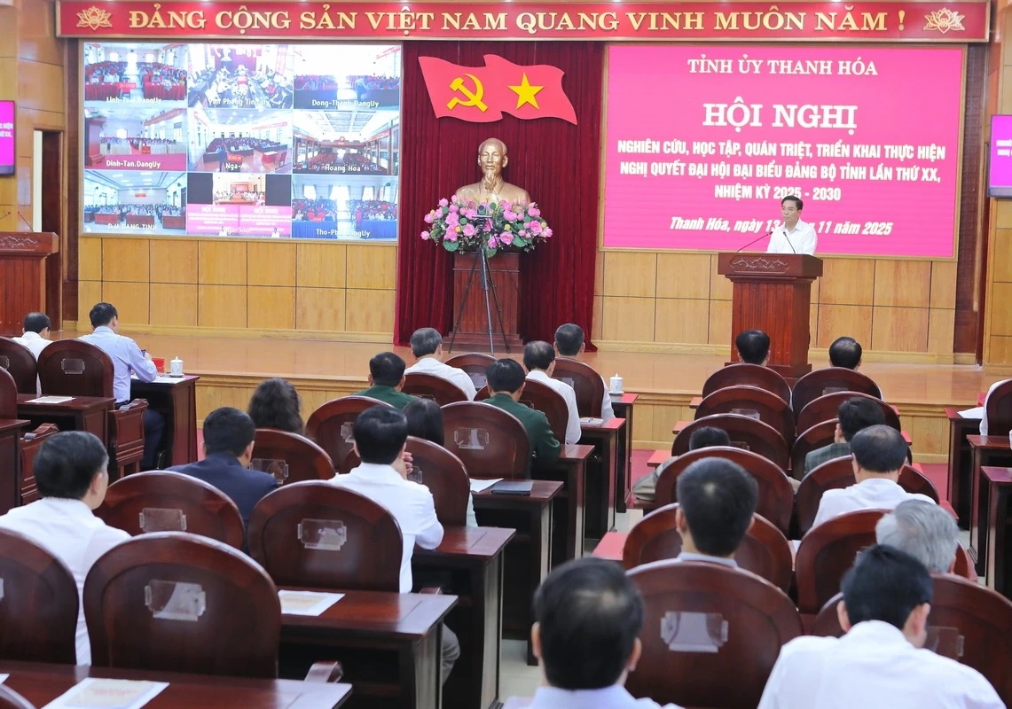 Chiều 13/11, Tỉnh ủy Thanh Hóa đã tổ chức hội nghị nghiên cứu, học tập, quán triệt, triển khai Nghị quyết Đại hội đại biểu Đảng bộ tỉnh lần thứ XX, nhiệm kỳ 2025-2030. Các đồng chí: Nguyễn Doãn Anh, Ủy viên Trung ương Đảng, Bí thư Tỉnh ủy; Nguyễn Hoài Anh, Ủy viên dự khuyết Trung ương Đảng, Phó Bí thư Tỉnh ủy, Chủ tịch UBND tỉnh; Trịnh Tuấn Sinh, Phó Bí thư Tỉnh ủy, Chủ tịch Ủy ban MTTQ tỉnh dự và trực tiếp quán triệt các nội dung tại hội nghị...