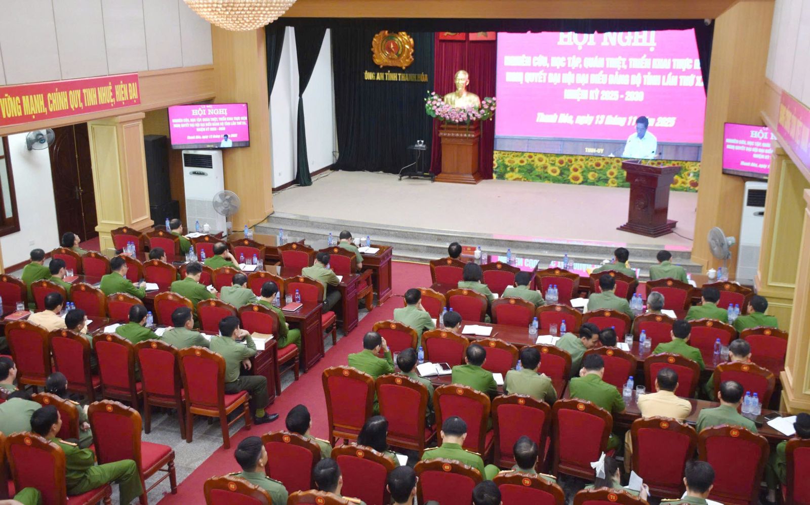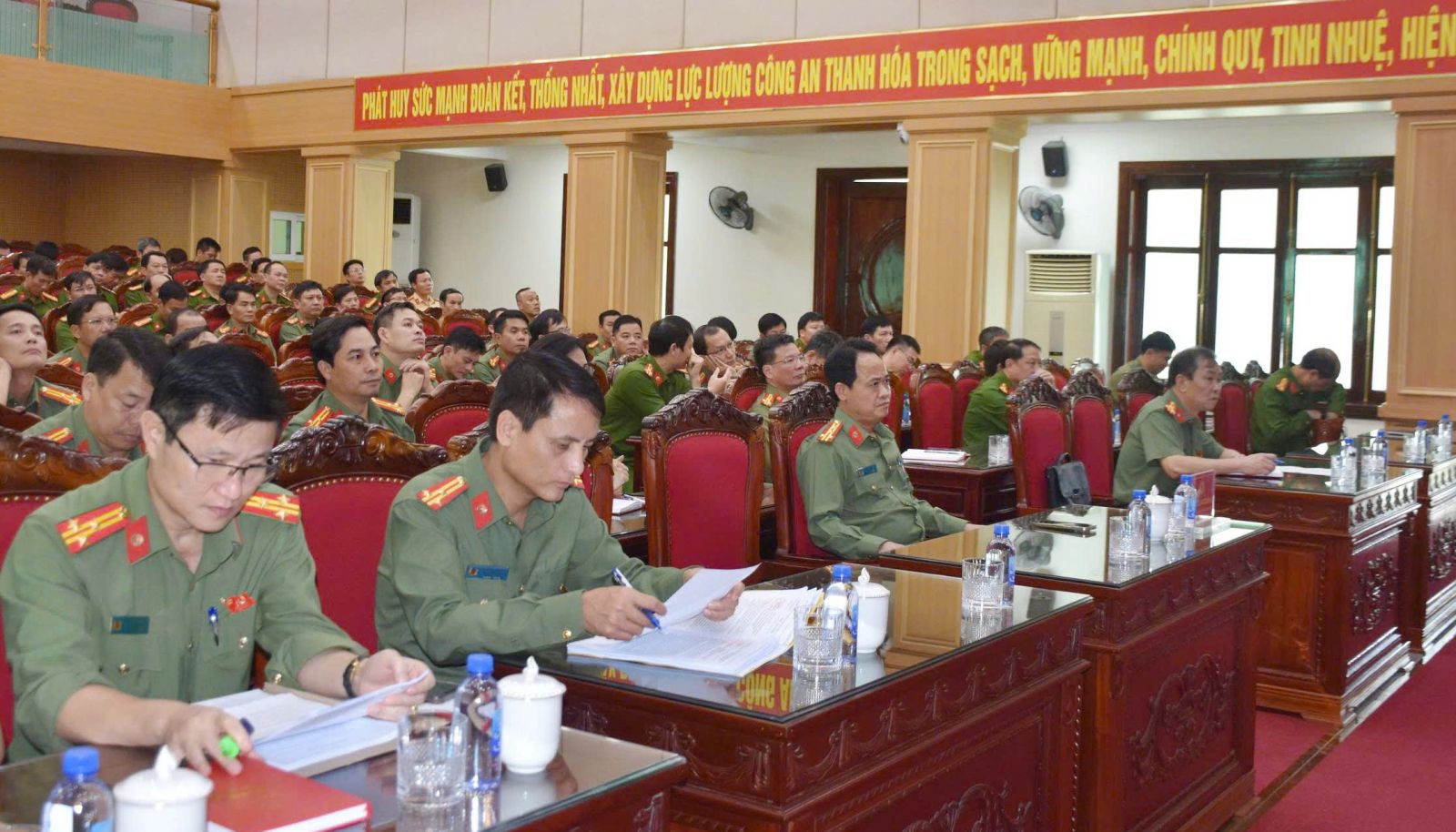 Tại điểm cầu Công an tỉnh Thanh Hoá, đồng chí Đại tá Lê Ngọc Anh, Phó Giám đốc Công an tỉnh chủ trì, cùng với sự tham gia của các đồng chí cấp ủy, lãnh đạo các đơn vị Công an tỉnh.