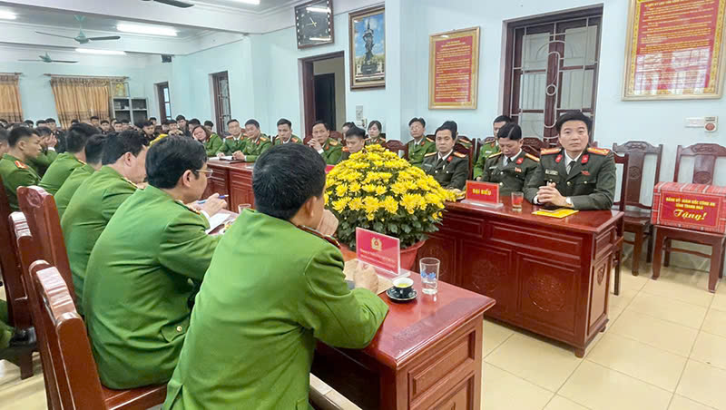 Đồng chí Phó Giám đốc phát biểu chỉ đạo công tác bảo đảm ANTT Tết tại các đơn vị đến thăm, chúc mừng