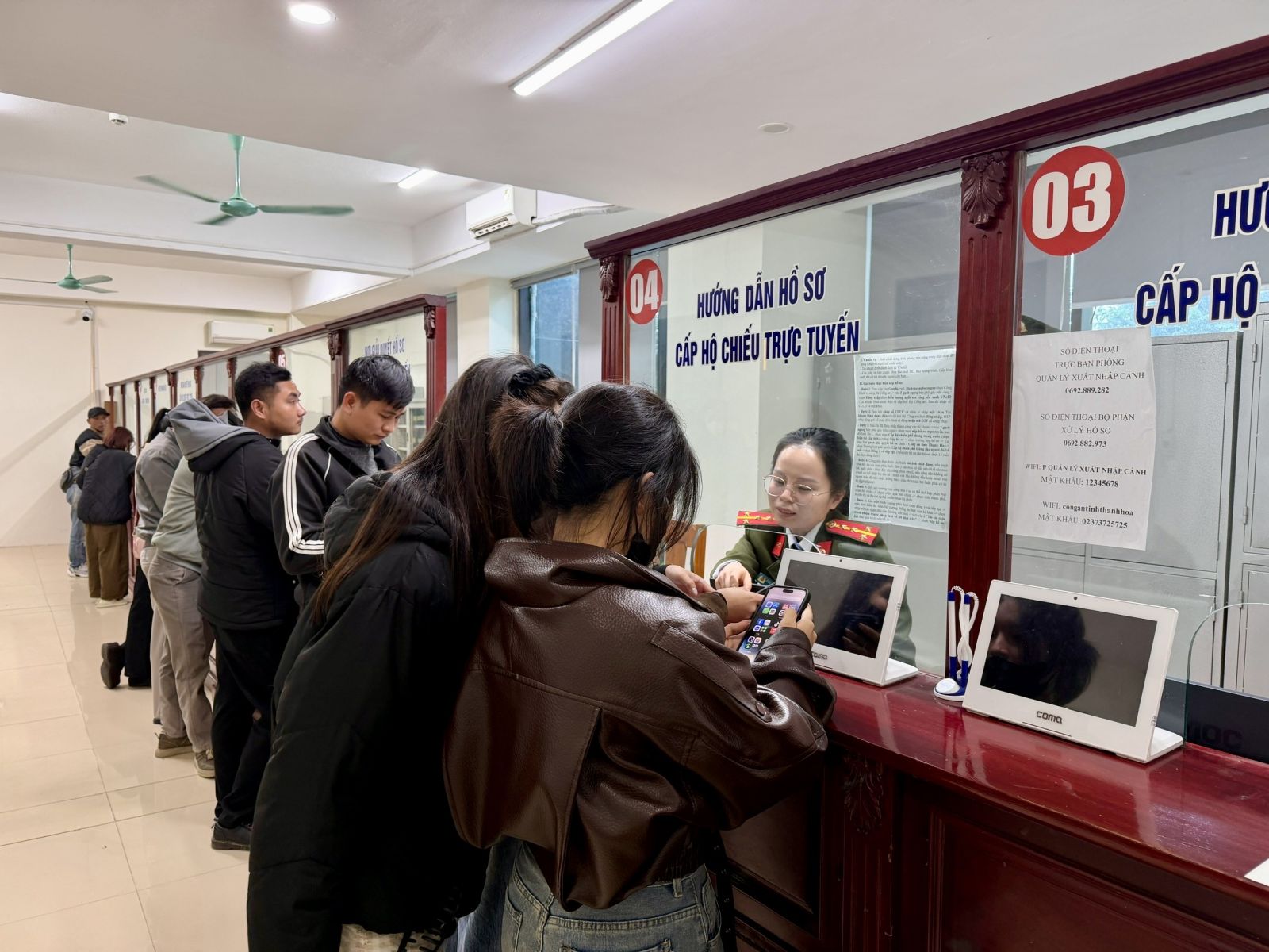 Cán bộ Phòng Quản lý xuất nhập cảnh Công an tỉnh Thanh Hóa tận tình hướng dẫn, giải quyết thủ tục hành chính cho người dân