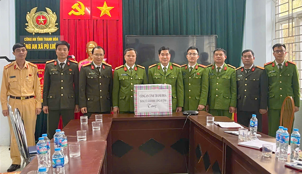 Đoàn công tác trao quà động viên cán bộ, chiến sĩ Công an xã Pù Luông.