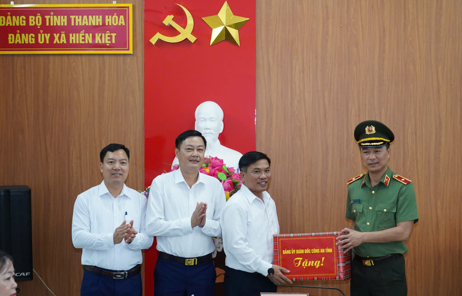 Thăm hỏi, động viên và tặng quà cấp ủy, chính quyền và cán bộ, chiến sĩ Công an các xã.