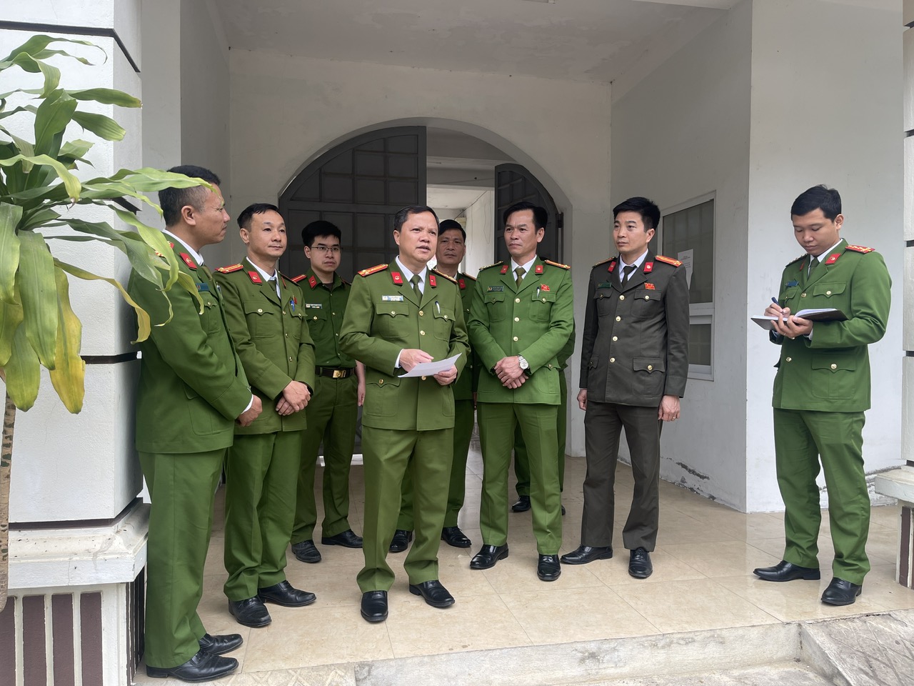 Thượng tá Kim Duy Cương, Phó Giám đốc Công an tỉnh kết luận một số vấn đề cần thực hiện tại buổi kiểm tra