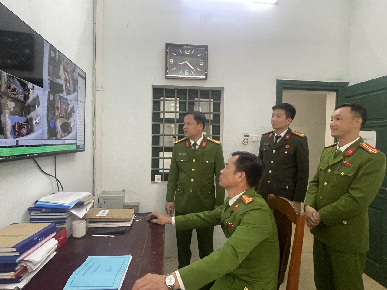 Đồng chí Phó Giám đốc kiểm tra hệ thống Camera giám sát tại phân trại