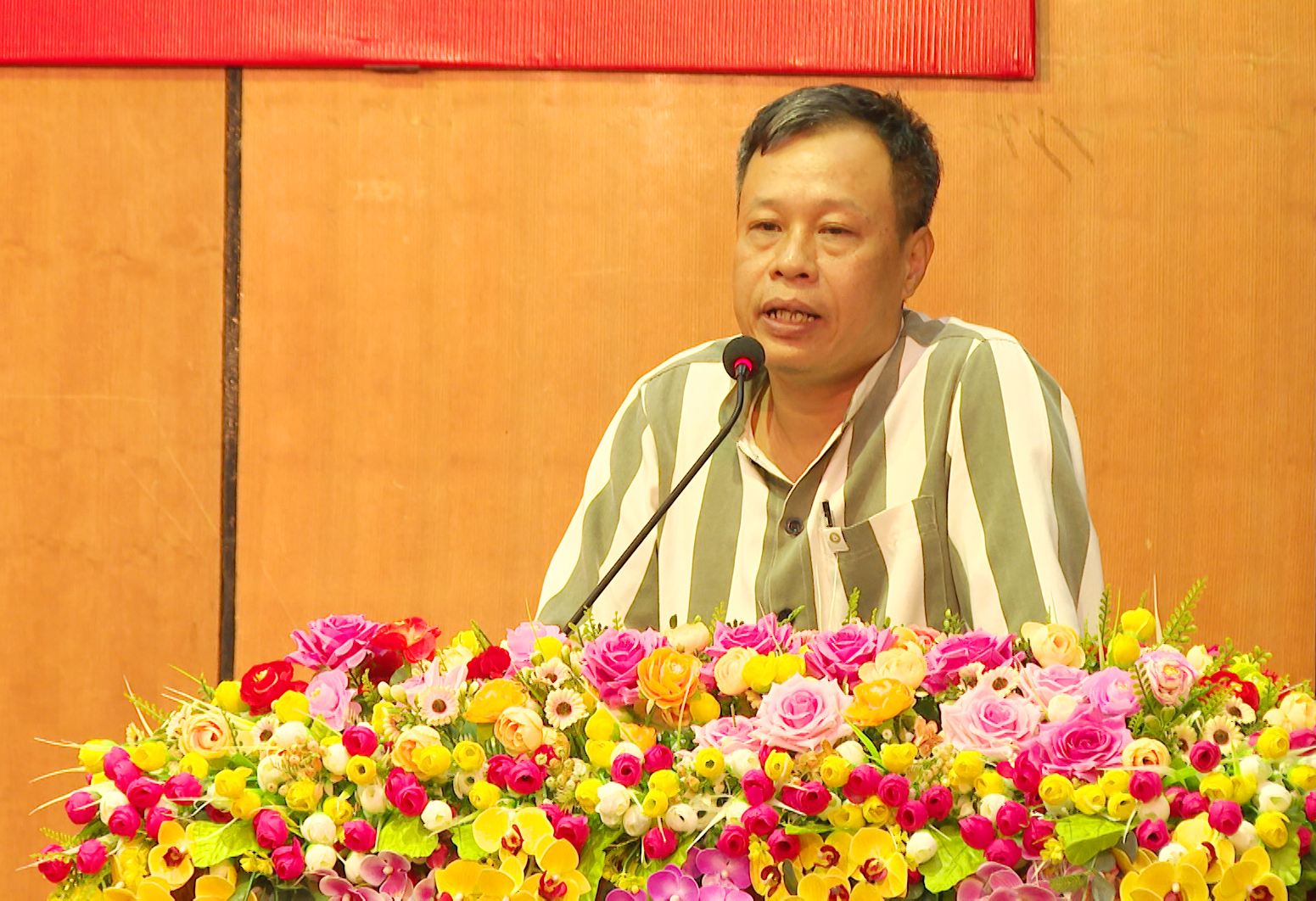 Phạm nhân Cấn Văn Tuấn xúc động phát biểu cảm ơn Ban Giám thị và các bộ quản giáo Trại giam Thanh Cẩm ​​​​tại buổi lễ