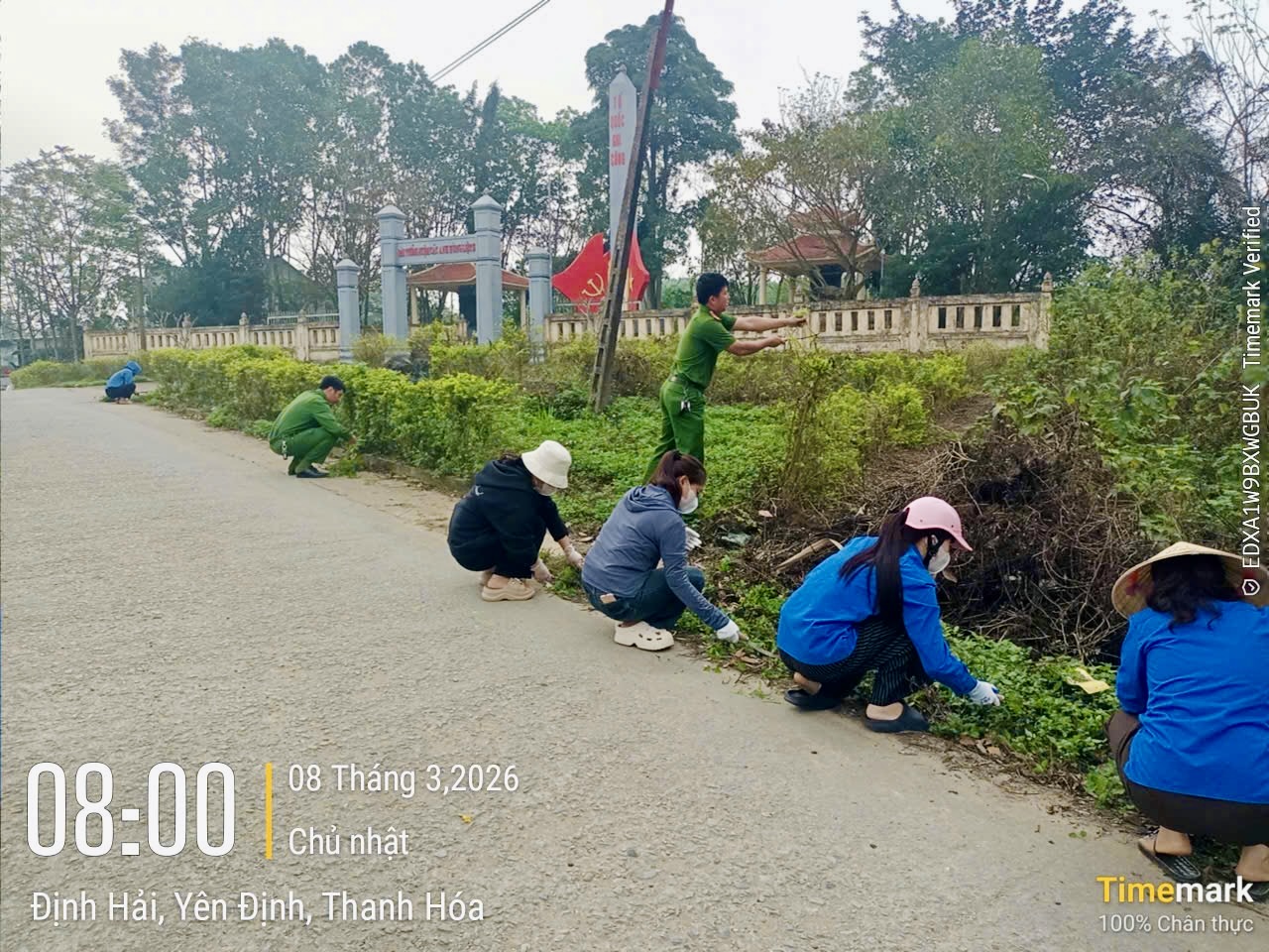 Công an xã Định Tân phối hợp với đoàn thanh niên xã tham gia công tác dọn vệ sinh môi trường chuẩn bị cho ngày bầu cử đại biểu Quốc hội và đại biểu Hội đồng nhân dân các cấp nhiệm kỳ 2026-2031