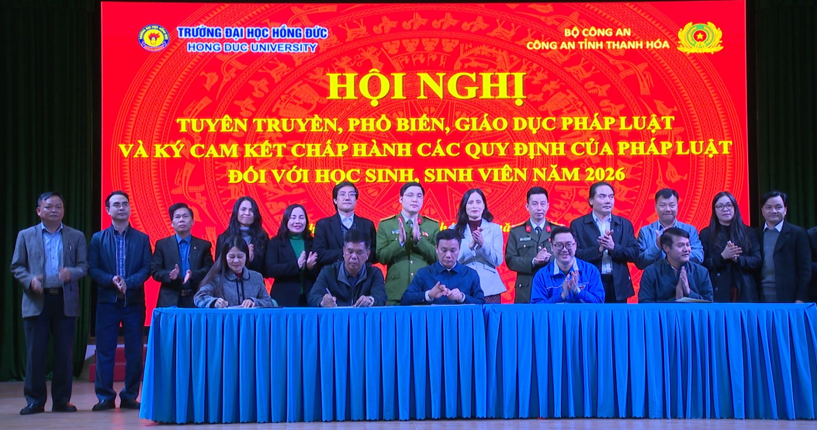 Tuyên truyền pháp luật và ký cam kết bảo đảm an ninh, trật tự cho học sinh, sinh viên Trường Đại học Hồng Đức