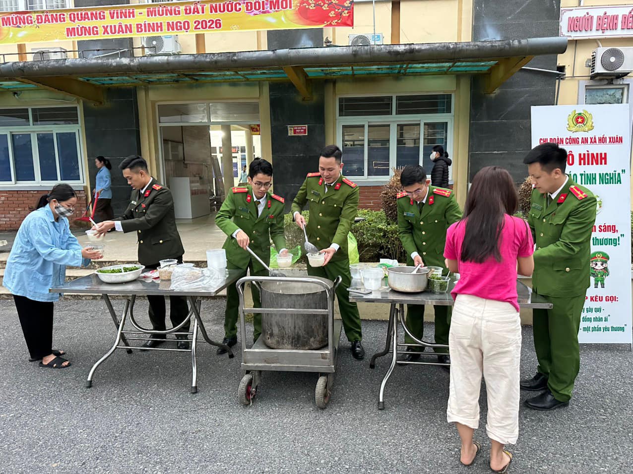 Với tinh thần “Vì Nhân dân phục vụ” và hưởng ứng phong trào thi đua “Ba nhất: Kỷ luật nhất - Trung thành nhất - Gần dân nhất”,  sáng 05/02/2026, Chi đoàn Thanh niên và Chi hội Phụ nữ Công an xã Hồi Xuân đã phối hợp cùng Chi đoàn Bệnh viện Đa khoa Quan Hóa tổ chức chương trình thiện nguyện trao tặng cháo miễn phí cho các bệnh nhân đang điều trị tại bệnh viện và người nhà có hoàn cảnh khó khăn.