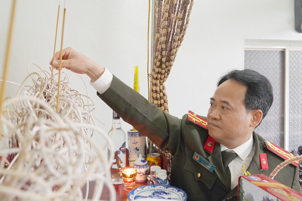 Đồng chí Phó Giám đốc thắp hương tưởng nhớ đồng chí cố Đại tá Phạm Như Nhuần, nguyên Phó Giám đốc Công an tỉnh.