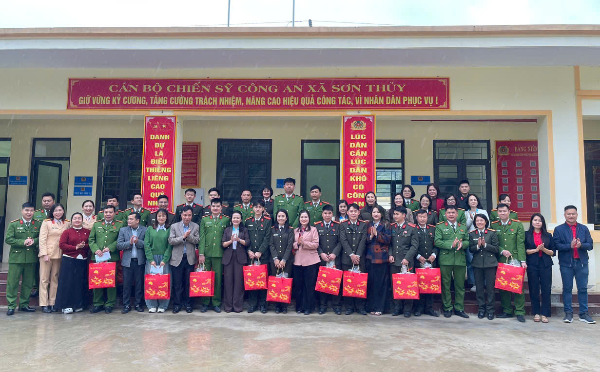 Sơn Thủy là xã vùng cao, biên giới với địa hình hiểm trở, khí hậu khắc nghiệt, nơi điều kiện sinh hoạt và làm việc của cán bộ, chiến sĩ Công an xã vẫn còn nhiều thiếu thốn. Thấu hiểu những vất vả thầm lặng đó, Đoàn công tác đã trực tiếp thăm hỏi và trao tặng 56 suất quà (mỗi suất trị giá 1 triệu đồng) cho 23 đồng chí Công an xã Sơn Thuỷ và 33 đồng chí là lực lượng tham gia bảo vệ ANTT ở cơ sở.