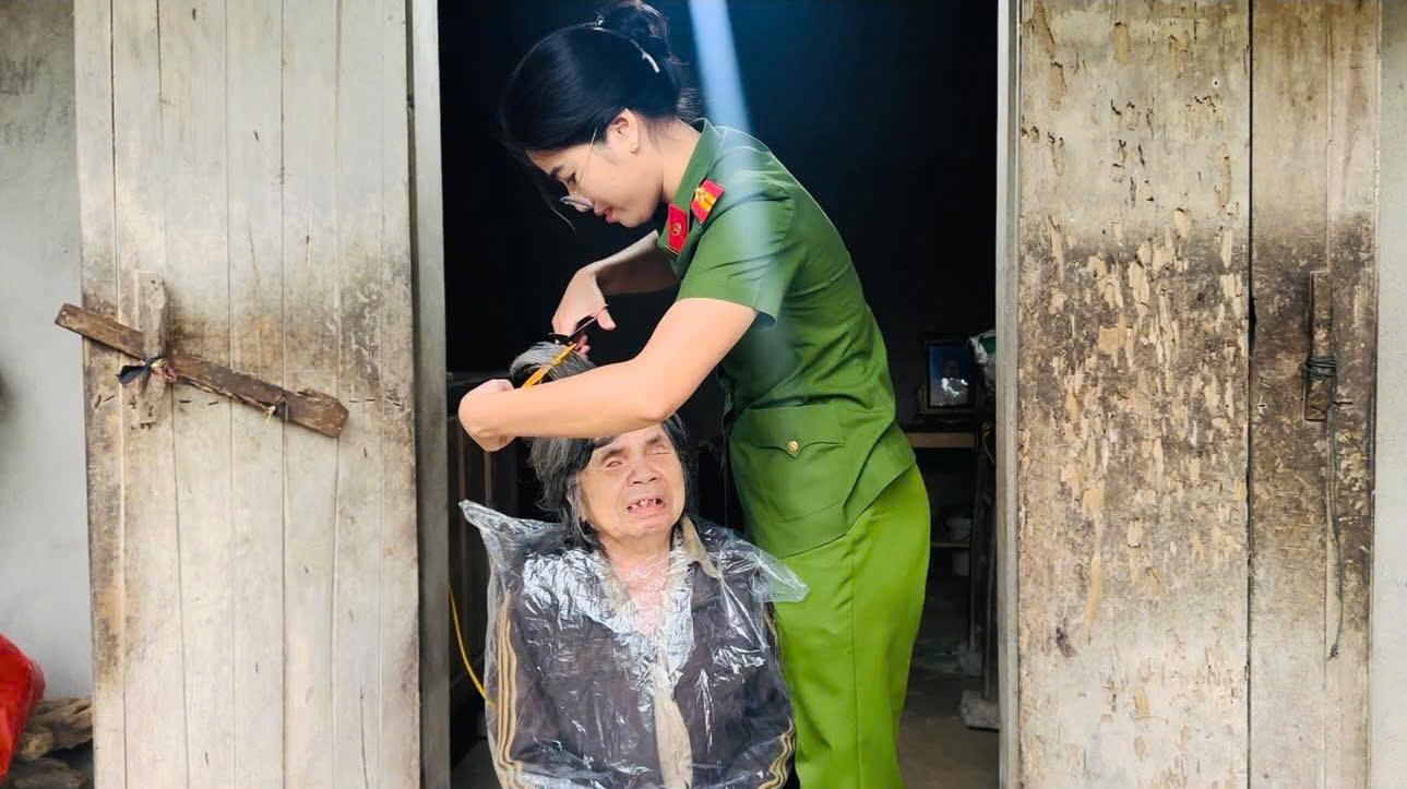 Là cán bộ nhiều năm gắn bó với cơ sở, Thiếu tá Bùi Thị Lan, cán bộ Công an xã Vân Du đã ân cần cắt tóc, gội đầu và trò chuyện cùng bà Bùi Thị Hồng bằng tiếng Mường - thứ ngôn ngữ thân thương gắn bó với bà từ thuở ấu thơ. Những lời hỏi han ấm áp bằng tiếng mẹ đẻ, cùng nụ cười chân thành của người nữ chiến sĩ Công an đã mang lại niềm vui trong trái tim người phụ nữ già neo đơn. Trong sự sẻ chia và thấu hiểu văn hóa đồng bào dân tộc, Thiếu tá Bùi Thị Lan cùng đồng đội đã lan tỏa thông điệp về tấm lòng nhân hậu, sự gần gũi và trách nhiệm của người chiến sĩ Công an nhân dân nơi cơ sở.