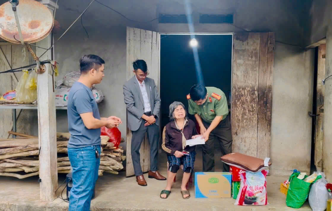 Công an xã Vân Du thăm, tặng quà, động viên bà Bùi Thị Hồng vượt qua khó khăn, ổn định cuộc sống