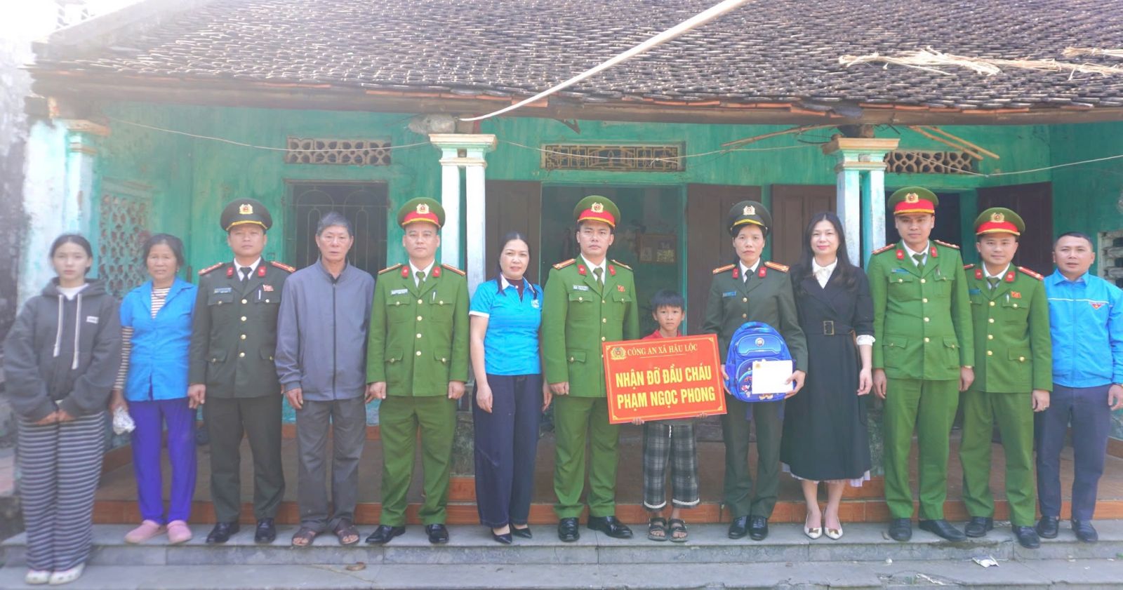Thiết thực hưởng ứng phong trào thi đua “Ba nhất: Kỷ luật nhất - Trung thành nhất - Gần dân nhất”, vừa qua, Công an xã Hậu Lộc đã phối hợp với Hội Liên hiệp Phụ nữ xã tổ chức chương trình nhận đỡ đầu, hỗ trợ và chăm sóc em Phạm Ngọc Phong, sinh năm 2016, trú tại thôn Hà Liên, xã Hậu Lộc, là trẻ mồ côi, có hoàn cảnh đặc biệt khó khăn trên địa bàn. Đây là một trong những hoạt động nhân văn, thể hiện tinh thần trách nhiệm, sự sẻ chia và tình cảm của lực lượng Công an đối với những mảnh đời kém may mắn.
