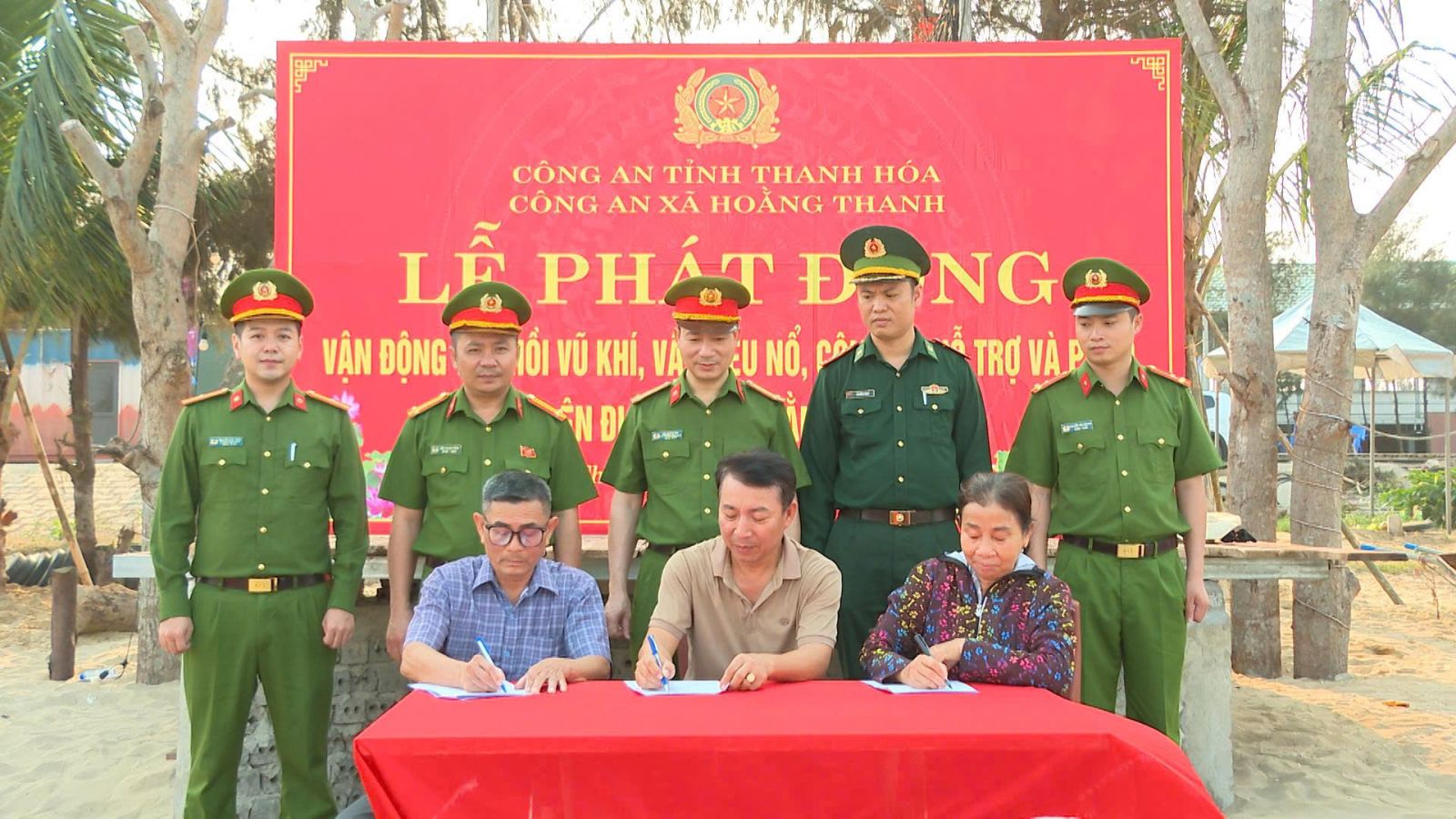 Tại buổi lễ, các hộ ngư dân trên địa bàn xã Hoằng Thanh đã thể hiện trách nhiệm, sự đồng thuận, hưởng ứng, ủng hộ cao đối với chủ trương và cách làm của lực lượng Công an. Bà con ngư dân xã Hoằng Thanh đã cùng nhau ký cam kết thực hiện "3 không": Không chế tạo, lắp ráp, mua bán, vận chuyển, tàng trữ trái phép VK, VLN, CCHT và pháo. Không bao che, tiếp tay cho các hành vi vi phạm. Không thờ ơ trước các thông tin tội phạm (tích cực tố giác, cung cấp tin báo cho lực lượng chức năng).