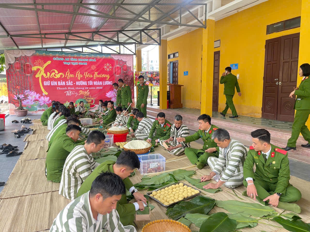 Cũng như mọi năm, trong dịp Tết Nguyên đán Bính Ngọ 2026, các phạm nhân và người bị tạm giam tại Trại tam giam Công an tỉnh Thanh Hóa cũng được đón Tết theo quy định. Chính sách nhân đạo của Đảng và Nhà nước được cụ thể hóa bằng sự chăm lo chu đáo từ vật chất đến tinh thần. Khẩu phần ăn của can, phạm nhân trong các ngày Tết được tăng hơn so với ngày thường, với đầy đủ các loại thực phẩm như: Thịt lợn, gạo nếp, bánh chưng, giò, chả lụa, bánh kẹo… Những phạm nhân có thành tích cải tạo tốt còn được biểu dương, khen thưởng kịp thời, tạo không khí thi đua phục thiện sôi nổi.