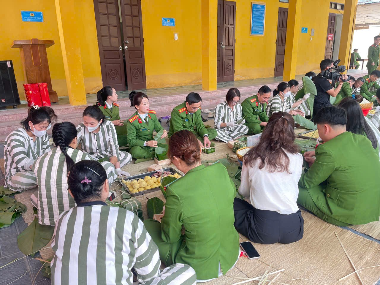 Điểm nhấn xúc động nhất có lẽ là hoạt động gói bánh chưng, bánh tét mang hương vị Tết cổ truyền của dân tộc đến với các phạm nhân, giúp họ khơi dậy sự hướng thiện và lòng trắc ẩn trong mỗi con người. Giữa sân trại, phạm nhân Phạm Văn T. (73 tuổi, quê ở xã Tây Đô, tỉnh Thanh Hóa) tỉ mỉ hướng dẫn những phạm nhân trẻ cách xếp lá, buộc lạt. Đôi bàn tay vốn chỉ quen với lao động nay khéo léo tạo hình từng chiếc bánh chưng xanh mướt.