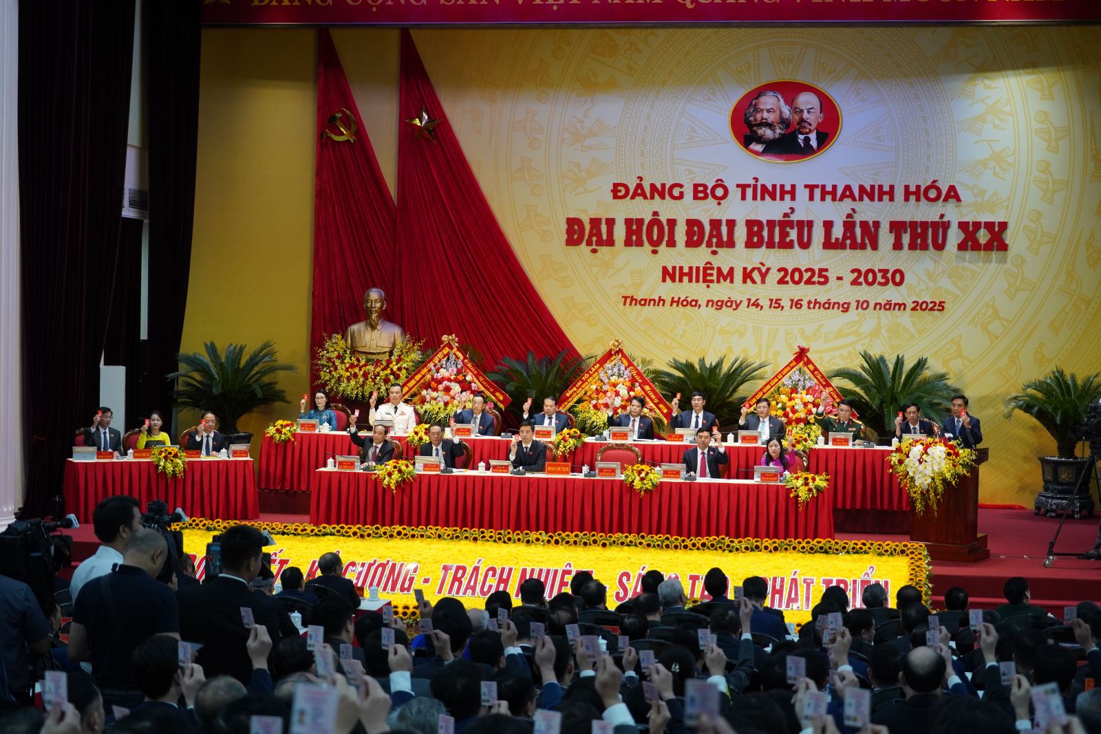 Sáng 15/10, tại Trung tâm Hội nghị 25B (phường Hạc Thành), Đảng bộ tỉnh Thanh Hóa khai mạc trọng thể Đại hội đại biểu Đảng bộ tỉnh lần thứ XX, nhiệm kỳ 2025-2030. Đại hội vinh dự được Ban Chấp hành Trung ương Đảng, đồng chí Tổng Bí thư Tô Lâm, Ban Chấp hành Đảng bộ Chính phủ tặng lẵng hoa chúc mừng. Đồng chí Phạm Minh Chính, Ủy viên Bộ Chính trị, Thủ tướng Chính phủ dự và trực tiếp chỉ đạo Đại hội.