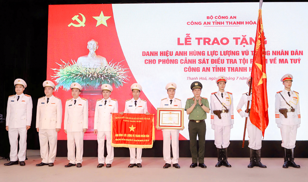 Ngày 31/7/2025, thừa ủy quyền, đồng chí Đại tướng Lương Tam Quang, Bộ trưởng Bộ Công an trao Danh hiệu Anh hùng Lực lượng vũ trang Nhân dân cho Phòng CSĐT tội phạm về ma túy Công an tỉnh Thanh Hóa.